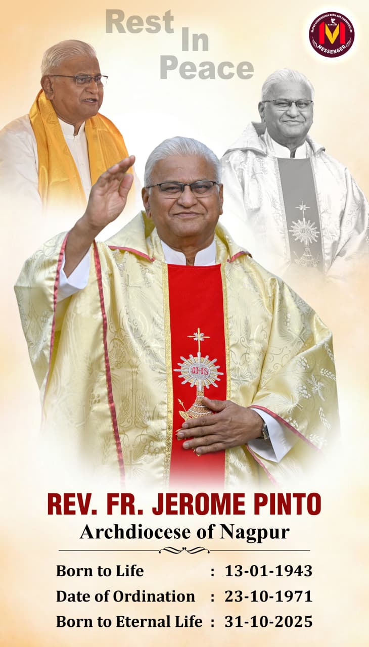 Rev. Fr. Jerome Pinto, former Vicar General of the Archdiocese of Nagpur, passed away today